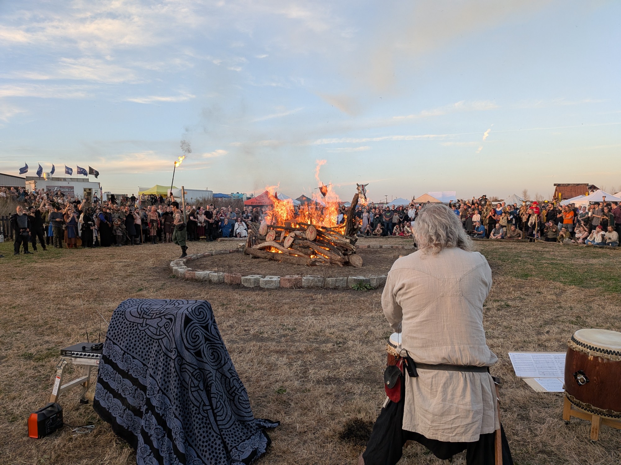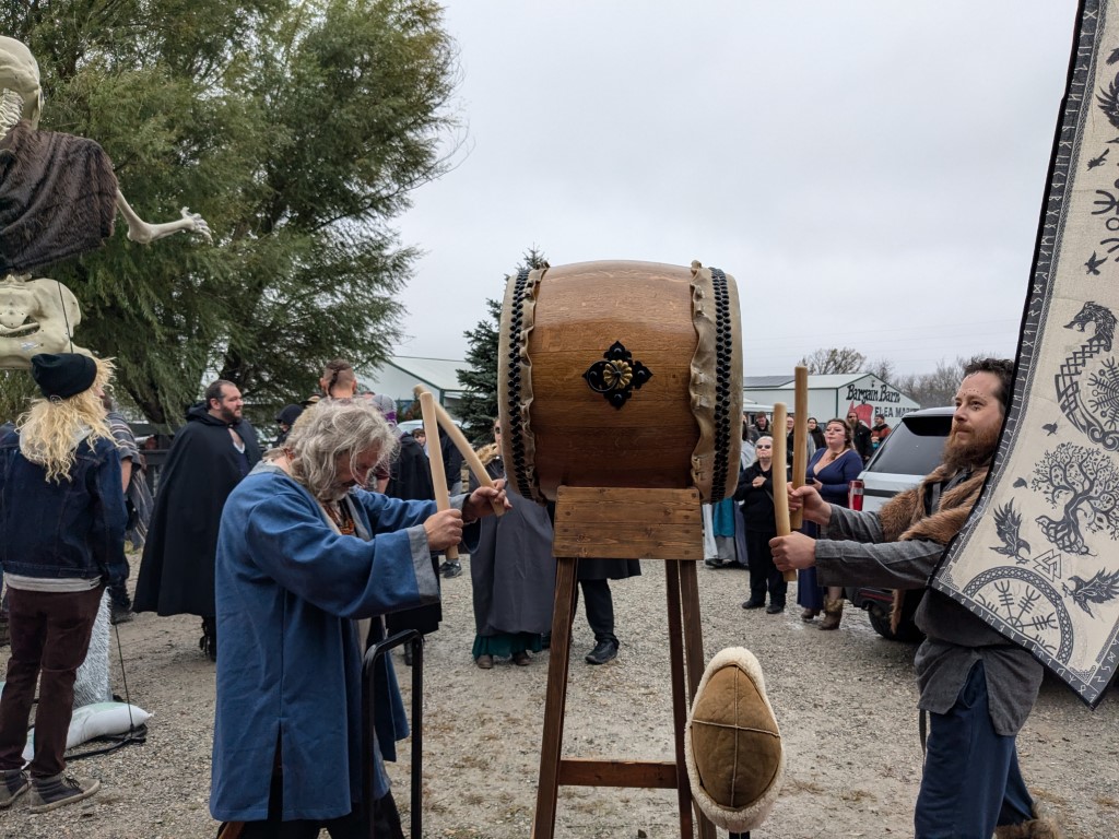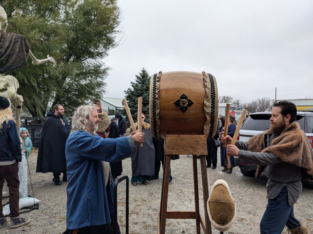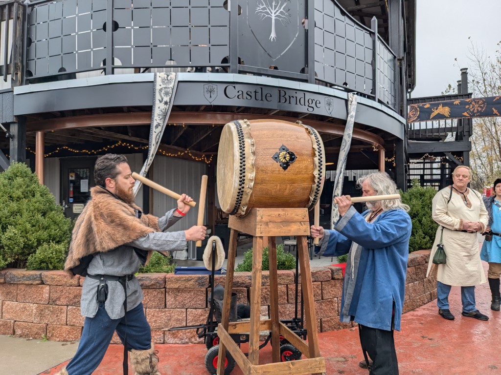 We use this persona to share big drums with Ren Fairs or any other events where Japanese Taiko would be more limiting or not appropriate. This also gives us a place to play with some fun ideas and concepts that do not quite fit our Taiko performances.